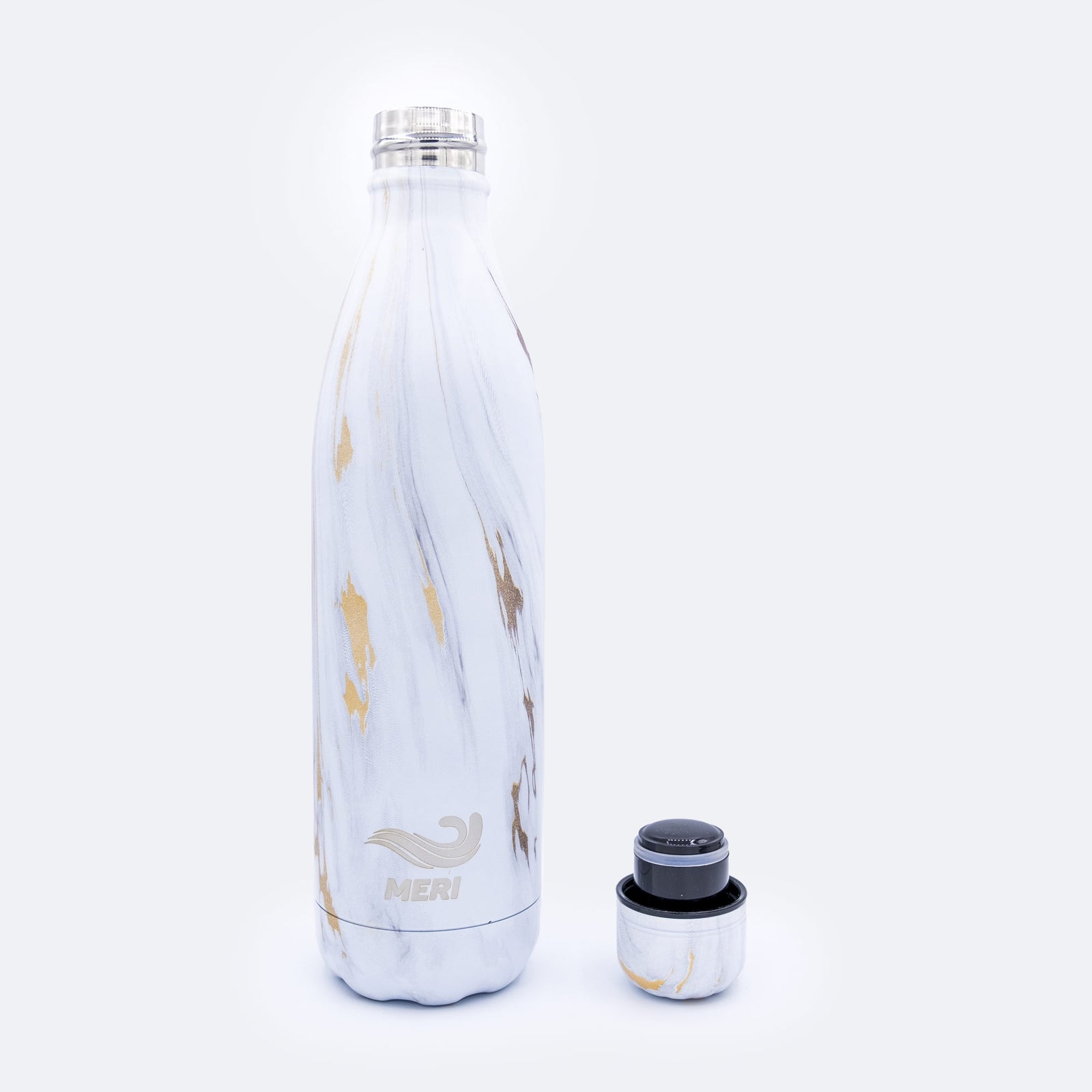 Meribottles-kestopullo on valmistettu kaksikerroksisesta ruostumattomasta teräksestä, tarjoten ylivoimaisen juomakokemuksen vuodenajasta riippumatta. Lämpimät juomat pysyvät lämpiminä ja kylmät jääkylminä. Ja mikä parasta, kaikki pullomme ovat BPA-vapaita ja kestävät vuosienkin runsaan käytön.