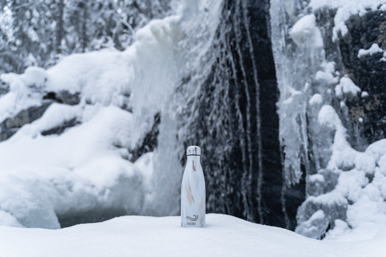 Meribottles are made of high-quality 304 stainless steel with double steel coverage. Materials used are stainless steel, a tiny amount of plastic and a silicon ring.